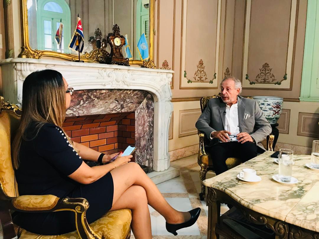 “Valia, gracias a ti y por supuesto a todos los televidentes que hoy pueden apropiarse de este diálogo que intentaremos desde mi punto de vista que sea un diálogo ameno, efectivo y por supuesto que logre de alguna manera dinamizar los procesos reales del sistema educativo internacional y por supuesto cómo ellos repercuten en la educación cubana”.