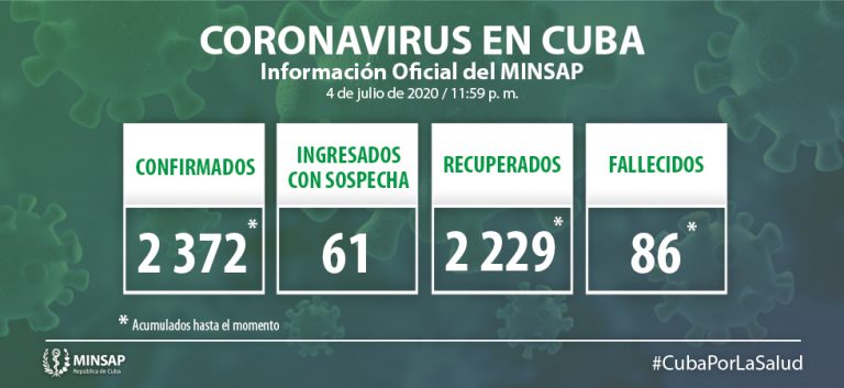 - Ciudadano cubano de 4 años de edad, residente en el municipio Cerro, provincia La Habana. Contacto de casos confirmados anteriormente. Se mantienen en vigilancia 20 contactos.