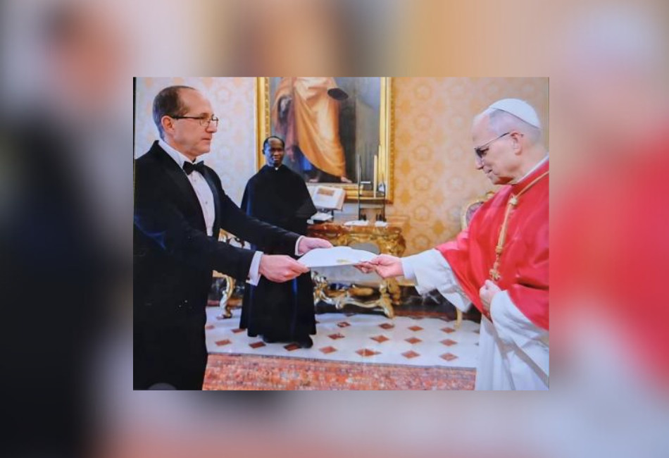 León XIV, por su parte, obsequió al embajador el libro Apartamento de la Audiencia Pontificia, sobre lugares históricos y artísticos donde el Santo Padre se reúne con fieles y diplomáticos, su estudio privado y sus habitaciones de estado, así como la Medalla Pontificia del Jubileo 2025.