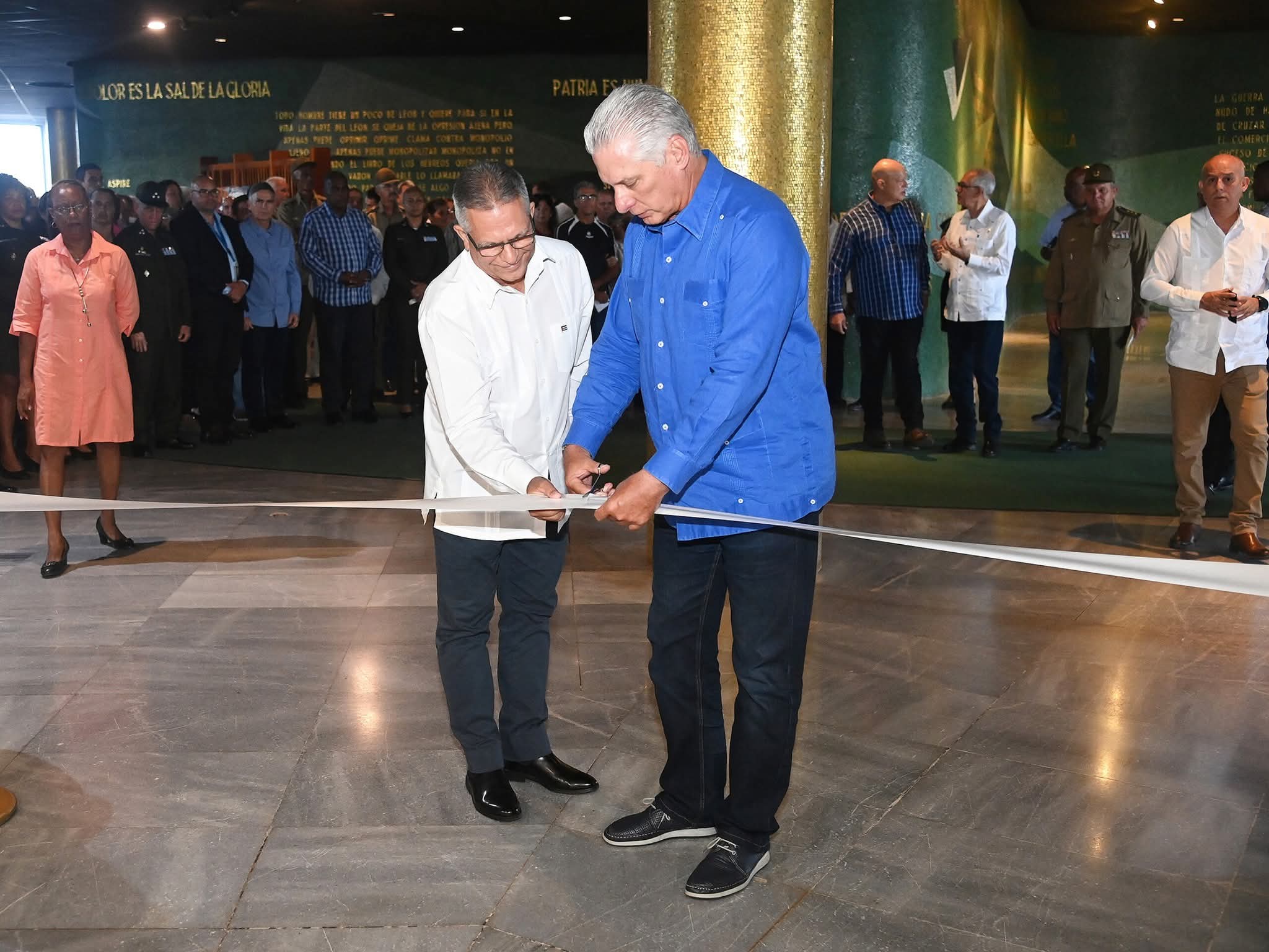 Como parte de esta conmemoración, que tuvo lugar en el Memorial José Martí, el Presidente recorrió la exposición «Toda la gloria del mundo», del fotógrafo Alex Castro, en homenaje a los #100AñosConFidel.
