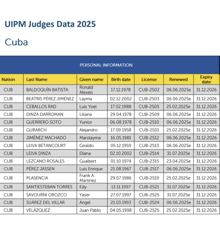 El pentatlón moderno de Cuba no se detiene y este logro en materia de arbitraje lo ratifica.