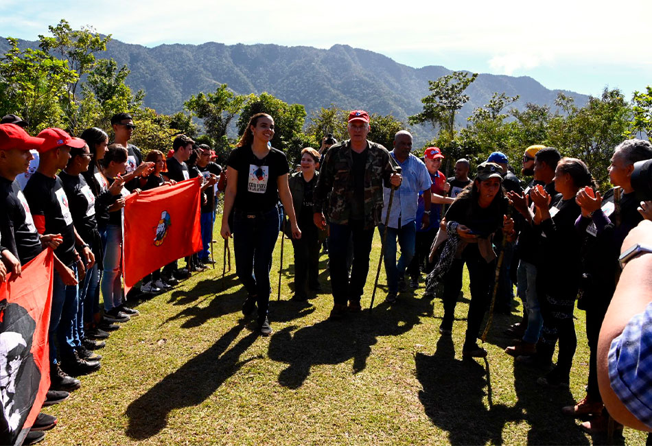 El presidente de Cuba, Miguel Díaz-Canel Bermúdez, acompañado de 65 jóvenes cubanos, ascendió a la histórica Comandancia General de Fidel Castro en La Plata, ubicada en las serranías del oriente cubano.