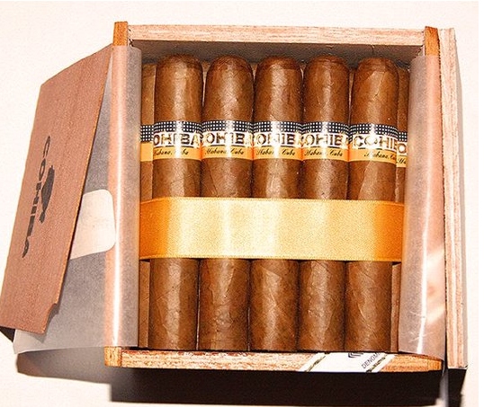 El periodista introduce el tema de la marca Cohíba, considerado el más emblemático de los habanos cubanos.