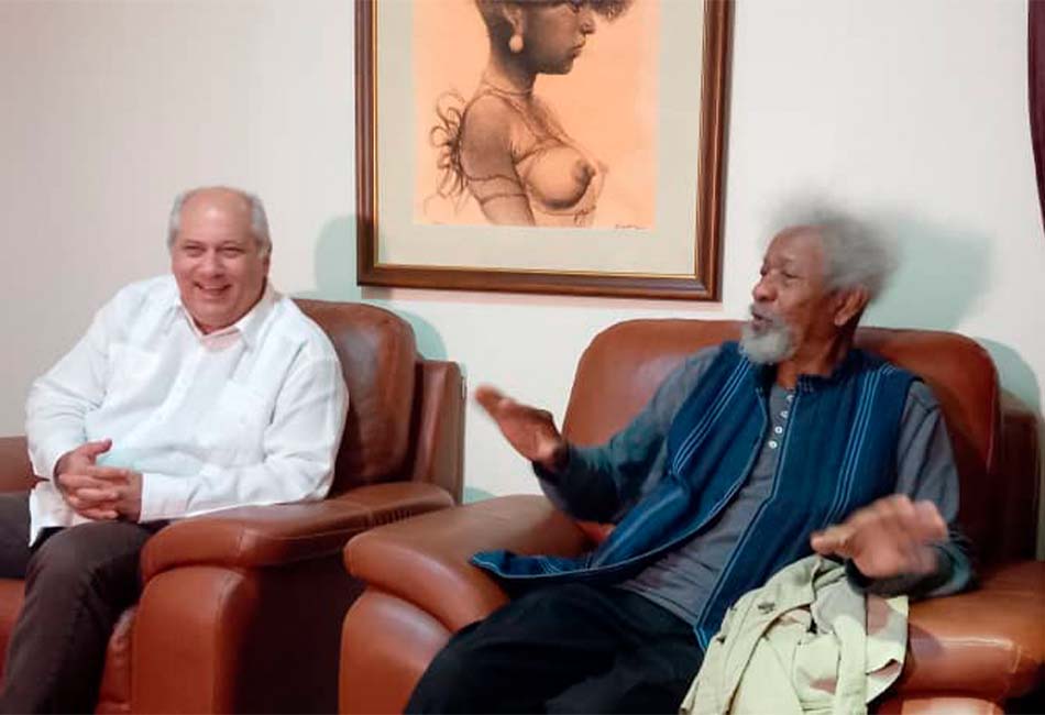 En la noche de este lunes arribó a Cuba el escritor nigeriano Wole Soyinka, Premio Nobel de Literatura (1986). El ministro de Cultura, Alpidio Alonso Grau, el presidente de la fundación Fernando Ortiz y directora de la oficina regional de la UNESCO en Cuba, Anne Lemaistre, acudieron al Aeropuerto Internacional José Martí a recibir al notable académico quien participará en la Conferencia Internacional por los 30 años del programa «La ruta de las personas esclavizadas» que comenzará el 21 de agosto.