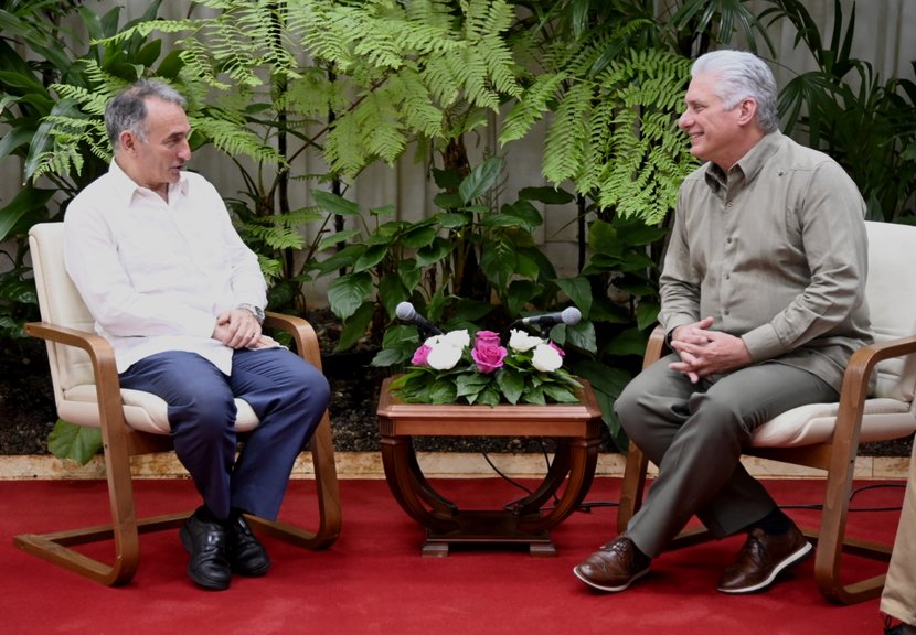 El presidente de Cuba, Miguel Díaz-Canel Bermúdez, recibió en el Palacio de la Revolución al secretario general del Partido Comunista de España (PCE), Enrique Santiago, según la cuenta oficial del mandatario en la red social X.