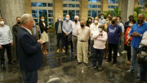 Junto a su esposa Lis Cuesta, y acompañado del miembro del Secretariado y Jefe del Departamento Ideológico del CC-PCC, Rogelio Polanco, la viceprimera ministra Inés María Chapman, y el ministro de Cultura, Alpidio Alonso, el mandatario le manifestó a los invitados que el encuentro “tiene mucho que ver con la energía, con el ánimo, con las emociones que nos dejó el recientemente clausurado Festival de Jazz”.