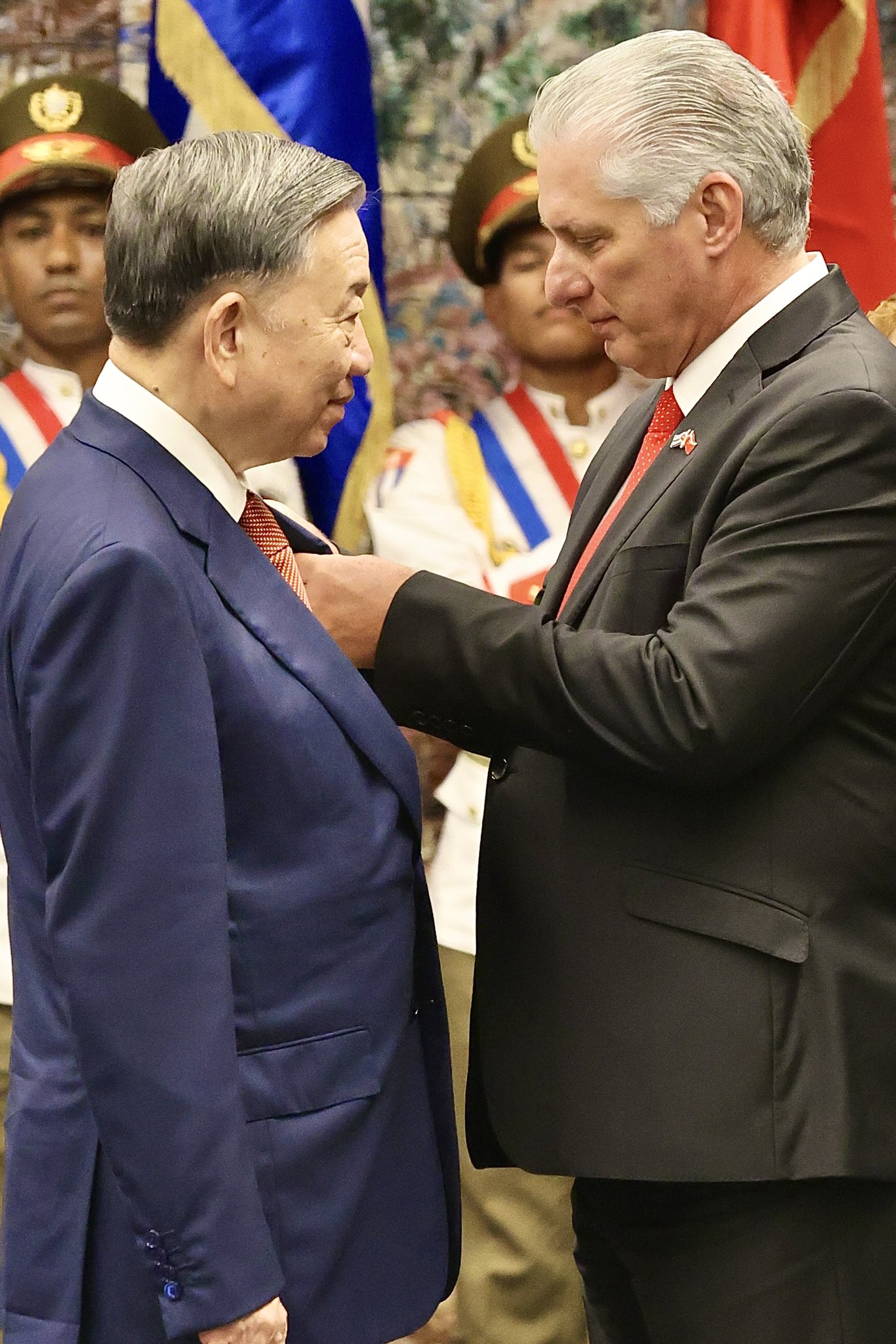 Al cierre de la jornada el jefe de estado cubano Miguel Díaz-Canel impuso la orden José Martí a su par de Vietnam To Lam, la más alta distinción que otorga la Mayor de las Antillas, una muestra de los profundos e históricos lazos de amistad y solidaridad que unen a Cuba y Vietnam, vínculos que al decir del mandatario del país asiático se seguirán fortaleciendo y perdurarán por muchos años más.