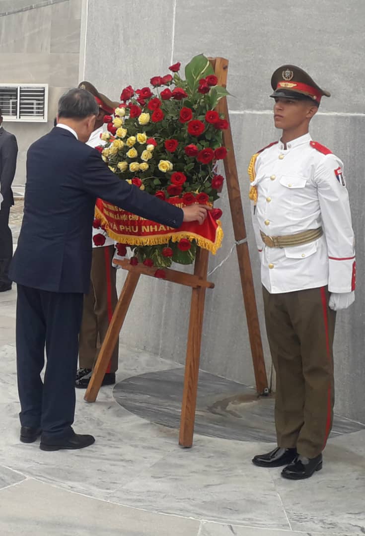 El Presidente de Vietnam To Lam y la delegación que lo acompaña rindió honores al Héroe Nacional mediante la colocación de una ofrenda floral ante la imagen del más universal de todos los cubanos en el Memorial José Martí de La Habana.