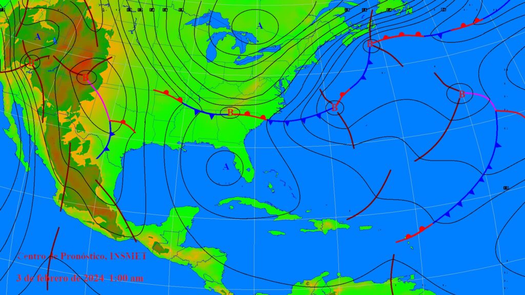 Según el reporte de la Dra. Miriam Teresita Llanes Monteagudo, los modelos de pronóstico muestran la formación de una baja extratropical con un frente frío asociado sobre la porción norte del Golfo de México durante este fin de semana.