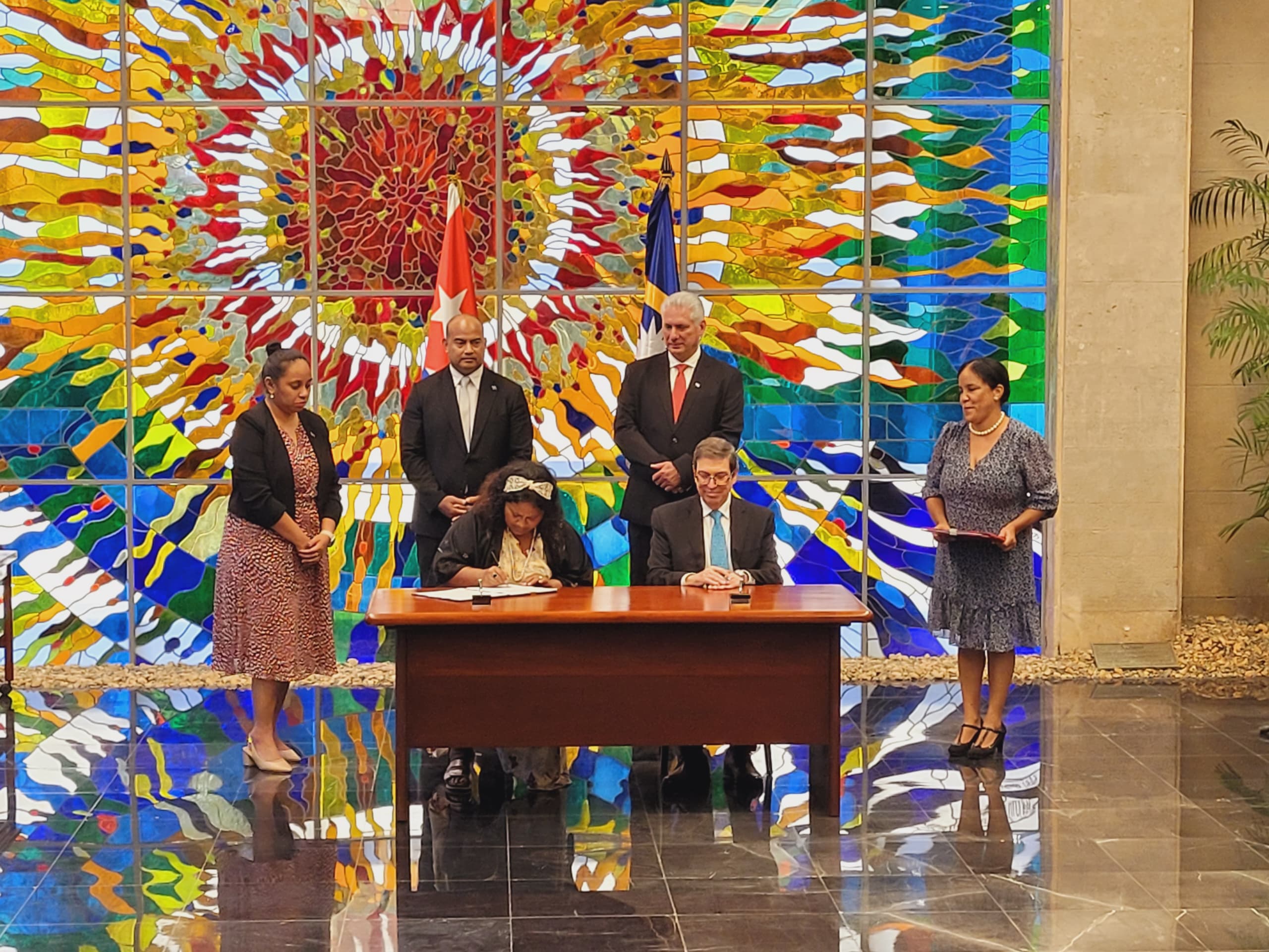 Tras el recibimiento, la delegación nauruana y la parte cubana firmaron acuerdos de cooperación en los ámbitos diplomáticos, la salud pública, relaciones exteriores, comercio, protección ambiental y el desarrollo de la educación fisica y el deporte.