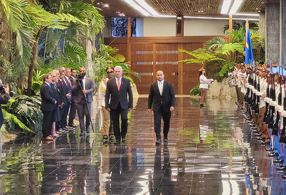 El presidente de la República de Nauru, S.E. Hon. David Ranibok Adeang, fue recibido este viernes en el Palacio de la Revolución, en La Habana, por su homólogo, Miguel Díaz-Canel Bermúdez.