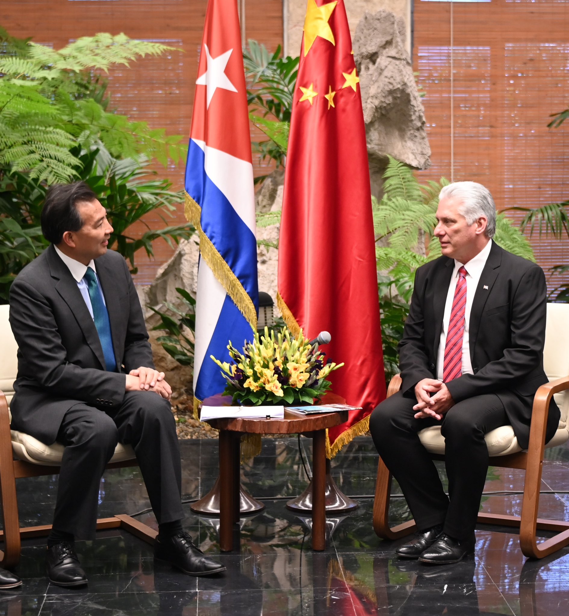 Recibí al compañero Luo Zhaohui, Presidente de la Agencia de Cooperación Internacional para el Desarrollo de #China, a quien agradecí por el apoyo solidario en materia de ayuda gubernamental, lo cual es evidencia de la hermandad entre nuestras naciones.#Cuba 🇨🇺 pic.twitter.com/l0cdwI8T6t