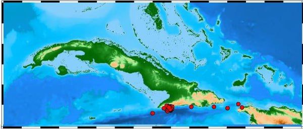 A las 6:11 am se registró un sismo de magnitud 4.2 reportado como perceptible en varias localidades de la provincia de Granma y de los municipios de Guamá y Santiago de Cuba de esta provincia. Este sismo estuvo localizado en las coordenadas 19.75 de latitud norte y 77.23 de longitud oeste, a unos 20.51 kilómetros al suroeste de Pilón, con una profundidad de 10 kilómetros.
