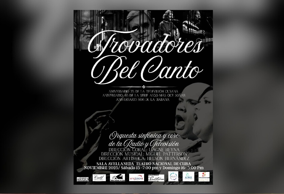 Dos funciones presentará el espectáculo «Trovadores Bel Canto», con el acompañamiento musical de la Orquesta Sinfónica y Coro de la Radio y la Televisión Cubana, en la dirección coral de Liagne Reyna y musical del maestro Miguel Patterson. La asistencia de dirección de Alejandro Pich, con la producción y dirección artística de Helson Hernández. Este proyecto regresa a la escena habanera dedicado a los aniversarios 75 de la Televisión Cubana, el 45 de la serie «Algo más que soñar», y el 506 de la fundación de la Ciudad de La Habana, con el apoyo de CMBF Radio Musical Nacional, Engimov y el Consejo Nacional de las Artes Escénicas. Las funciones están programadas para los días de noviembre, sábado 15 a las 7:00 p.m. y domingo 16 a las 5:00 p.m. en la sala Avellaneda del Teatro Nacional de Cuba.