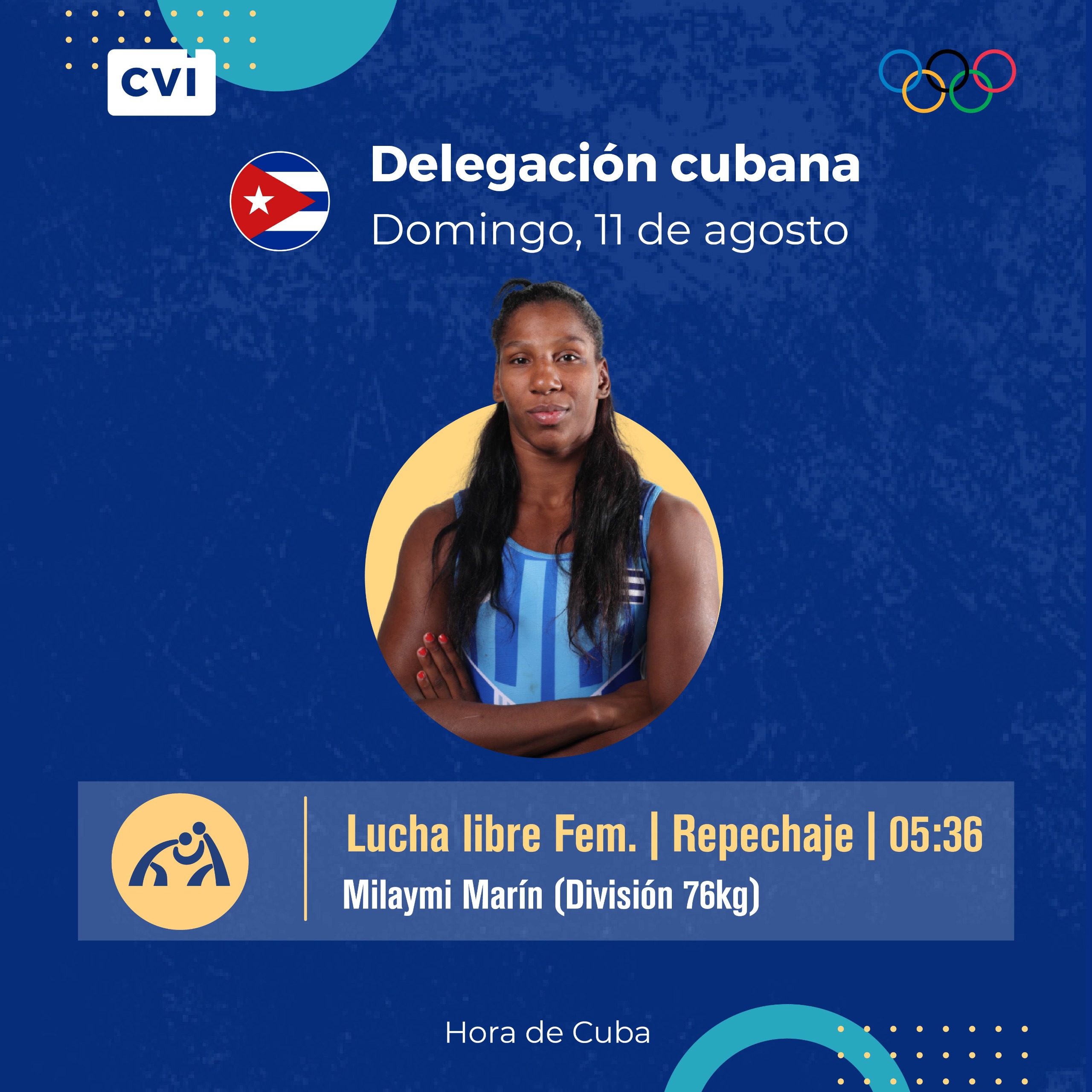 Solo Milaymi Marín (División 76kg) en la lucha libre femenina pudo ser arrastrada a la repesca de mañana. La campeona panamericana derrotó en octavos de final a la búlgara Yuliana Yaneva con pizarra de 7-1, mientras después chocaría con la estadounidense Kennedy Blades en un cerrado combate de cuartos de final donde terminó cediendo con pizarra de 3-4. La norteña avanzó a la final y mantuvo con vida a nuestra representante.