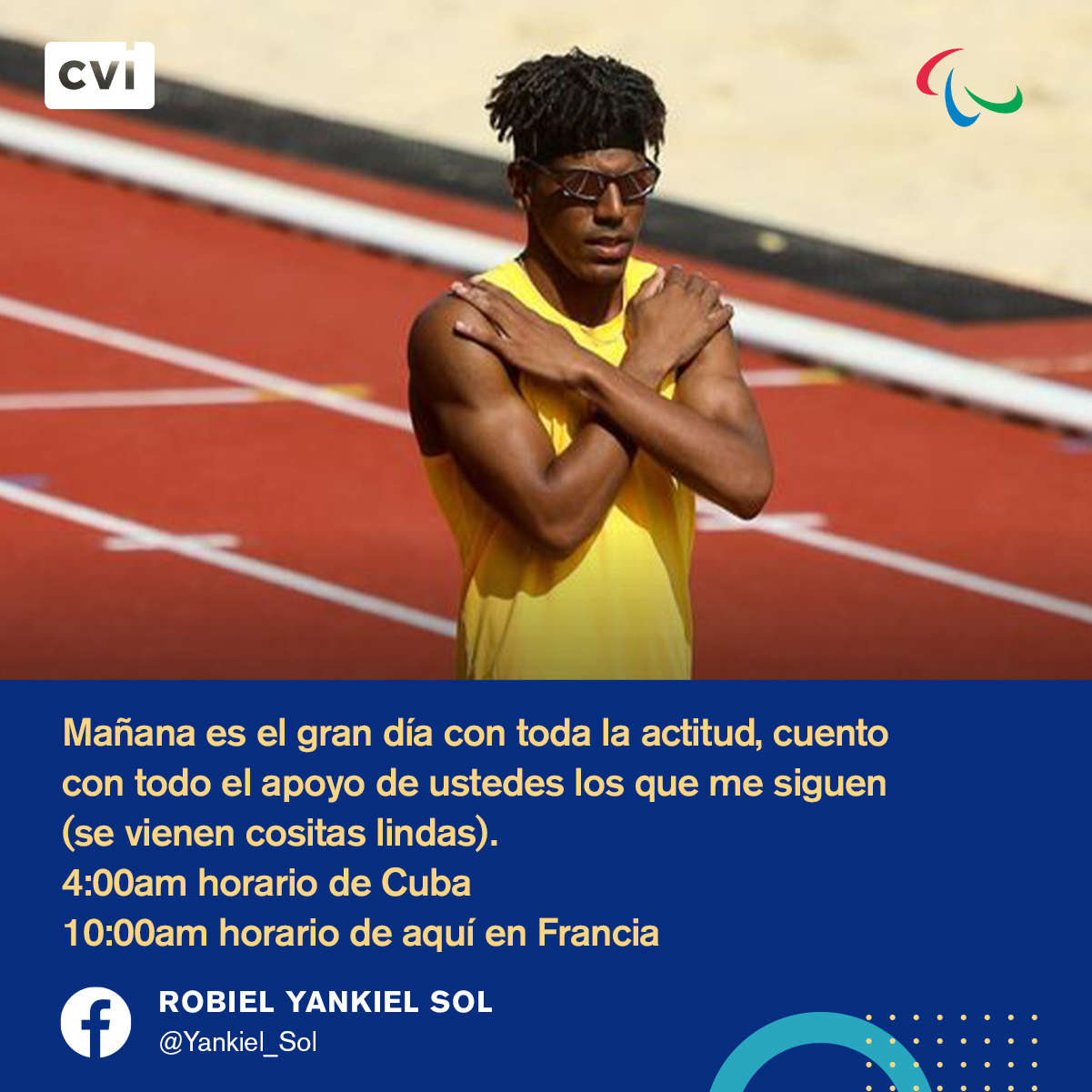Mañana 3 de septiembre desde la 06:14 (Hora de Cuba) buscará su novena medalla de oro en Juegos Paralímpicos y la primera en la capital francesa.