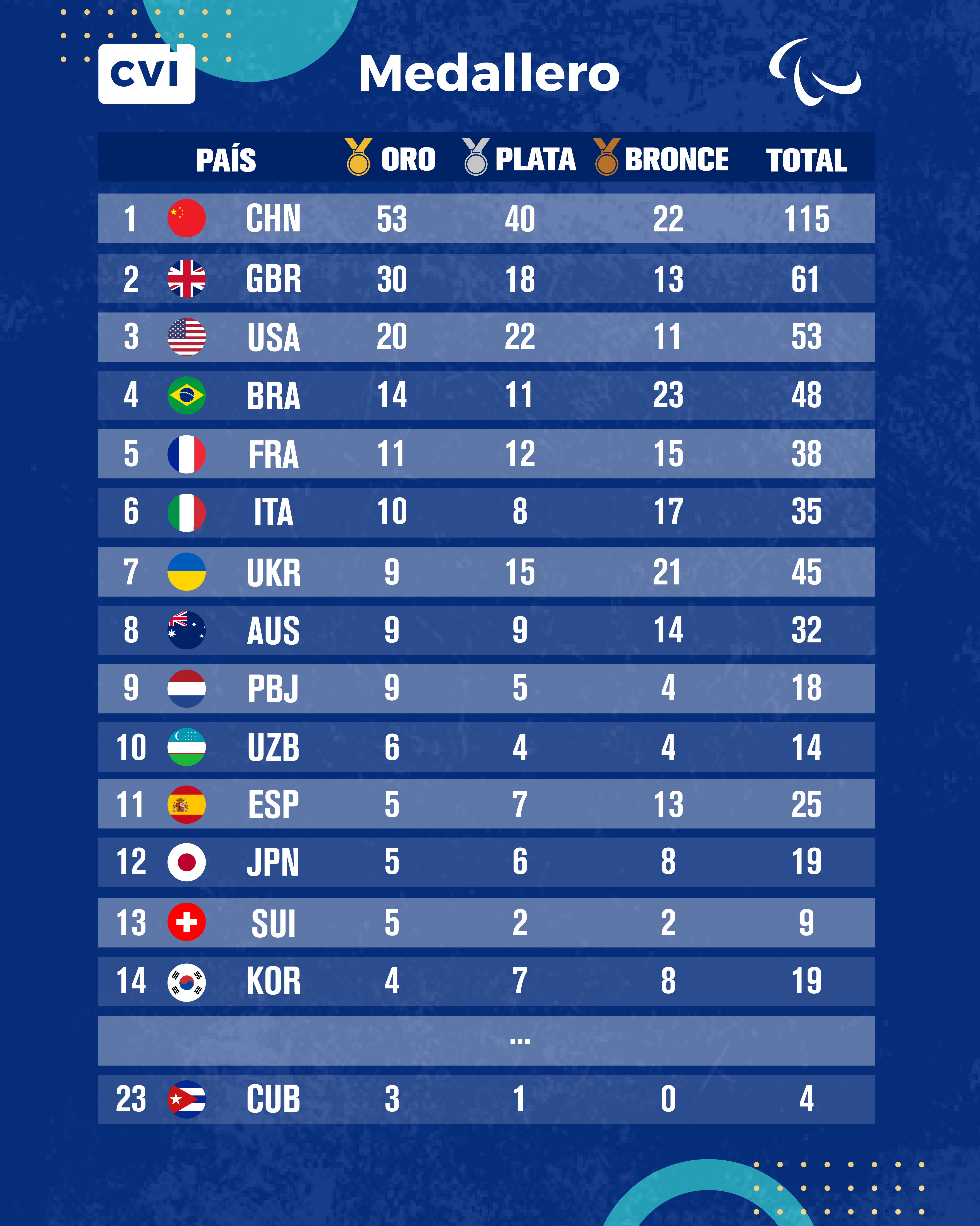 Mañana estará en las semifinales enfrentando al italiano Federico Falco desde las 13:00 (Hora de Cuba). El europeo, que venció 3-2 en cuartos de final al actual campeón paralímpico Young Dae Joo de Corea del sur, fue campeón mundial en 2017 y terminó quinto en Tokio 2020.