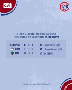 Por los derrotados, Yordanis Samón impulsó par de carreras y conectó un jonrón. Además, Andy Cosme se fue de (3-3) con una anotada y un extrabase.