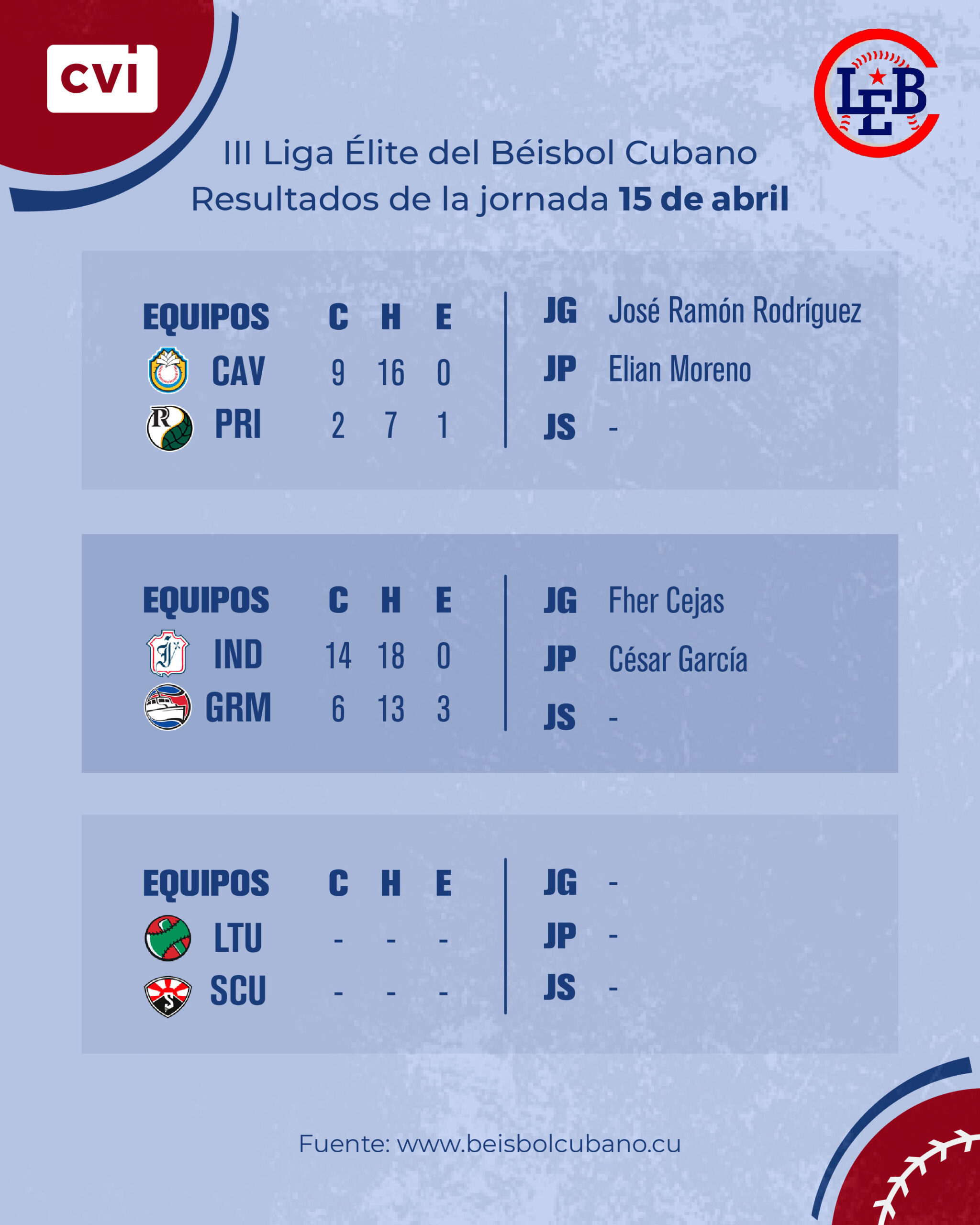 Resumen beisbolero de Élite: 15 de abril del 2025