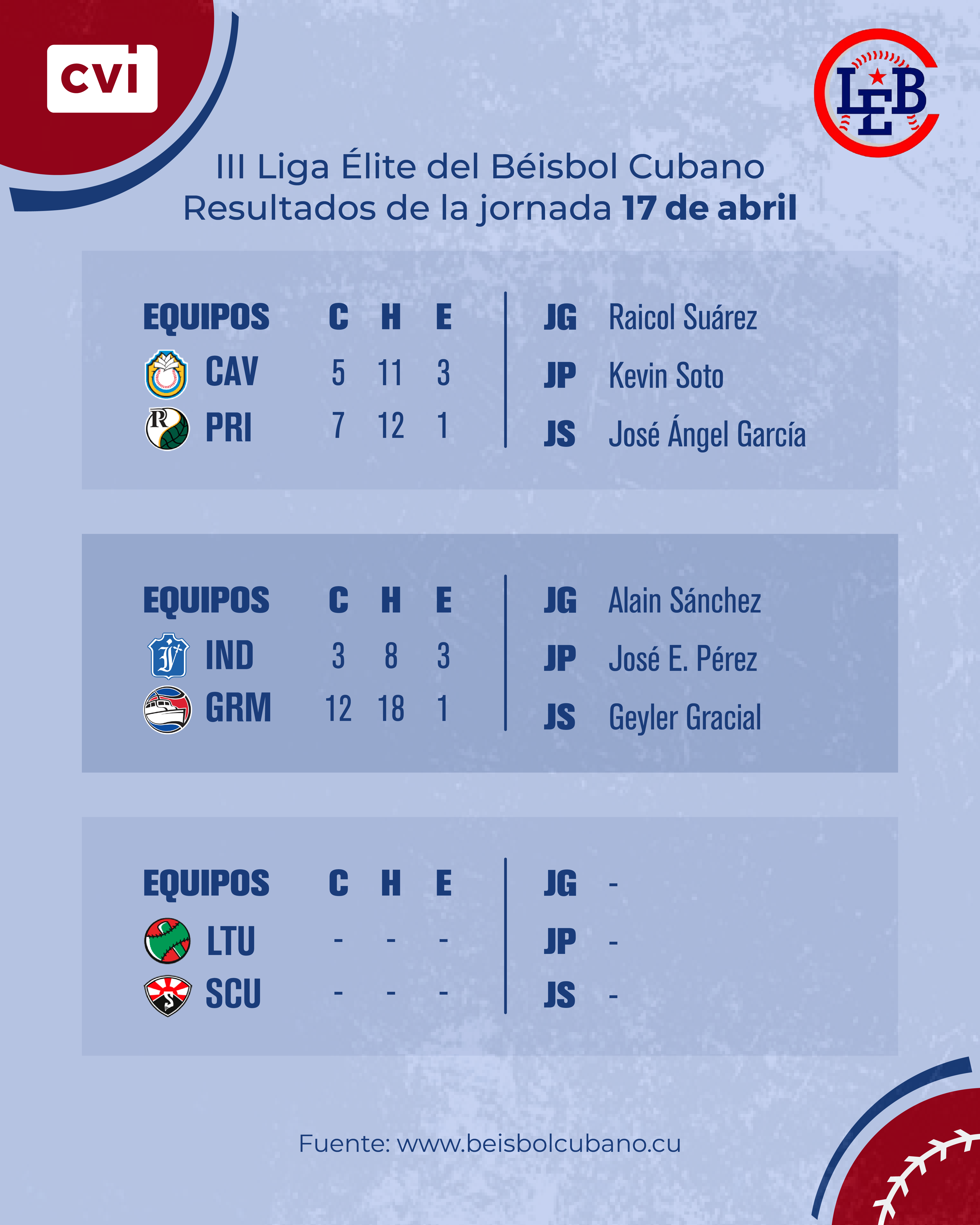 Pedro Almeida, en jornada perfecta con 4 jits, dos de ellos dobles, y el primer madero Yuliesky Remón con 5 inatrapables en seis turnos al bate, lideraron la producción ofensiva del conjunto oriental, que nuevamente contó con una excelente actuación de Yordanis Samón, que se acerca a las comparecencias necesarias para entrar oficialmente entre los líderes de bateo en el torneo.