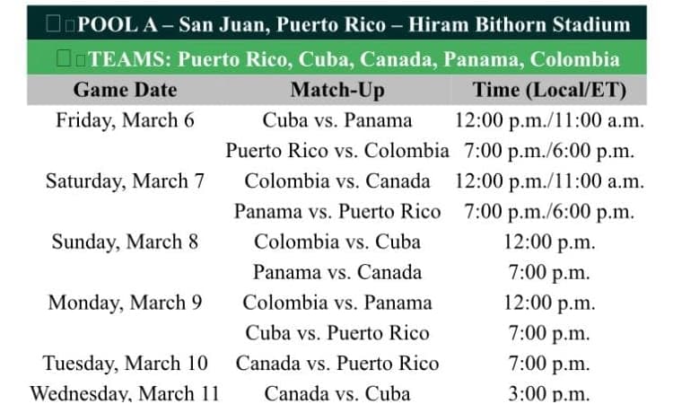 El martes 10 Cuba no juega porque solo se realizará el partido entre Canadá y Puerto Rico en horas de la noche.