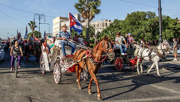 En la Caravana multicolor participan estudiantes de la Enseñanza Media, de la Federación Estudiantil Universitaria, motoristas, ciudadanos en bicicletas, cocheros de la Oficina del Historiador y demás personas y transportistas que han deseado sumarse.