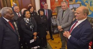 Luego de un entrañable recibimiento en la sede de este órgano parlamentario y de recorrer juntos una emotiva exposición que atesora momentos históricos de las relaciones entre Cuba y el Consejo de la Federación; el Presidente de la Asamblea Nacional agradeció la solidaridad con Cuba, especialmente los pronunciamientos emitidos sistemáticamente de condena al bloqueo económico, comercial y financiero impuesto por el Gobierno de Estados Unidos y contra la inclusión de nuestro país en la espuria lista de supuestos Estados patrocinadores del terrorismo.