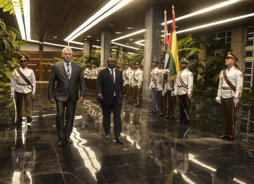 El Presidente de la República de Cuba, Miguel Díaz-Canel Bermúdez, sostuvo este jueves conversaciones oficiales con el presidente de la República de Guinea Bissau, excelentísimo señor Umaro Sissoco Embaló, quien realiza una visita oficial a nuestro país.