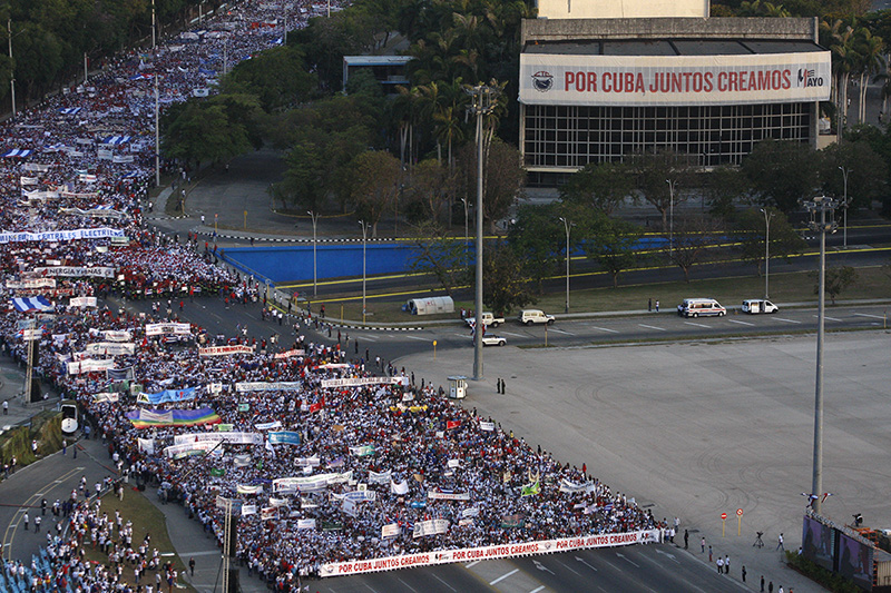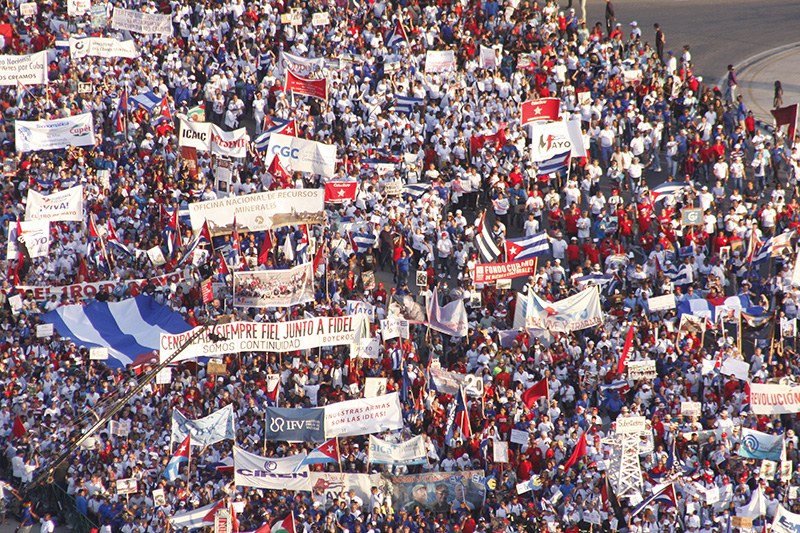 Desfilamos definitivamente por la Revolución que late con ansias de combate y resiliencia. Por Céspedes, Martí, por Maceo, Gómez, Mella… por el Che, Almeida, por Celia, Vilma, Melba y Haydee. Desfilamos por el gigante, por ese invicto comandante, que nos enseñó a andar erguidos, a pensar con cabeza propia y corazón de pueblo. Por Raúl y los hombres y mujeres de la continuidad.