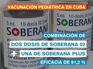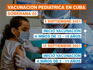 Con un esquema de vacunación de 28-56 días se vacunaron primero los infantes de 12 a 18 años y luego los de 2 a 11 años con dos dosis de Soberana 02 y una dosis de Soberana Plus.
