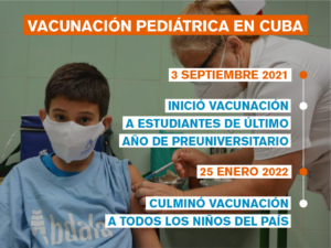 La isla ha desarrollado cinco vacunas contra el coronavirus y empezó desde el 5 de septiembre del pasado año la campaña de inmunización en edades pediátricas.