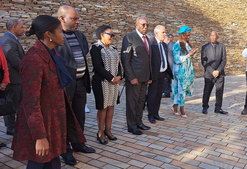 A su llegada al Freedom Park, Valdés Mesa fue recibido por la ministra en funciones de Deporte, Artes y Cultura, Maropene Ramokgopa, y la viceministra del ramo en funciones, Pinky Kekana, asi como por el presidente del Consejo de esa instalación conmemorativa, Embajador Bheki Langa.