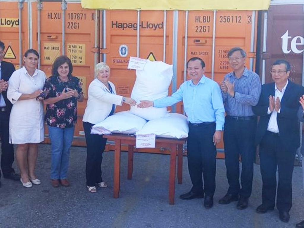 Durante la ceremonia de entrega, celebrada en la Zona Especial de Desarrollo Mariel, se anunció el donativo de otras 1 500 toneladas de arroz, a nombre del vice primer ministro vietnamita, Ho Duc Phoc.