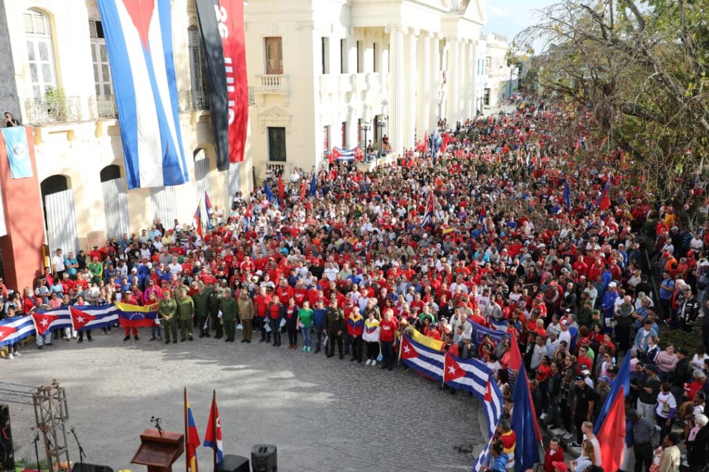En Santa Clara, una representación del pueblo de esta tierra, reiteró el apoyo innegociable de los cubanos a los hijos de Bolívar y Chávez, una nación de hombres y mujeres defensores de su Revolución y su libertad, un pueblo que, más que todo, es ya, nuestro hermano.