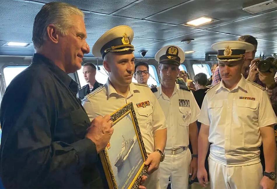 El presidente de Cuba, Miguel Díaz-Canel Bermúdez, visitó el interior de la fragata Admiral Gorshkov y la cubierta del submarino Kazán de la Flota del Norte de Rusia, que cumplen una visita oficial en el puerto de La Habana.