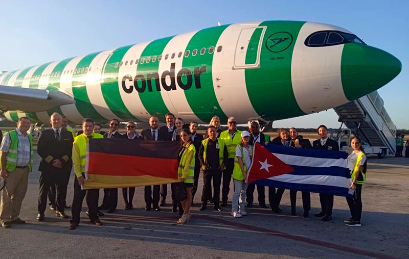 El Aeropuerto Internacional Frank País, ubicado en la oriental provincia de Holguín, recibió el primer vuelo de la aerolínea Condor procedente de Frankfurt, Alemania, con capacidad para 310 pasajeros, superior al Boing-767, que operaba anteriormente hacia este destino, según informó la entidad en su perfil de la red social Facebook.