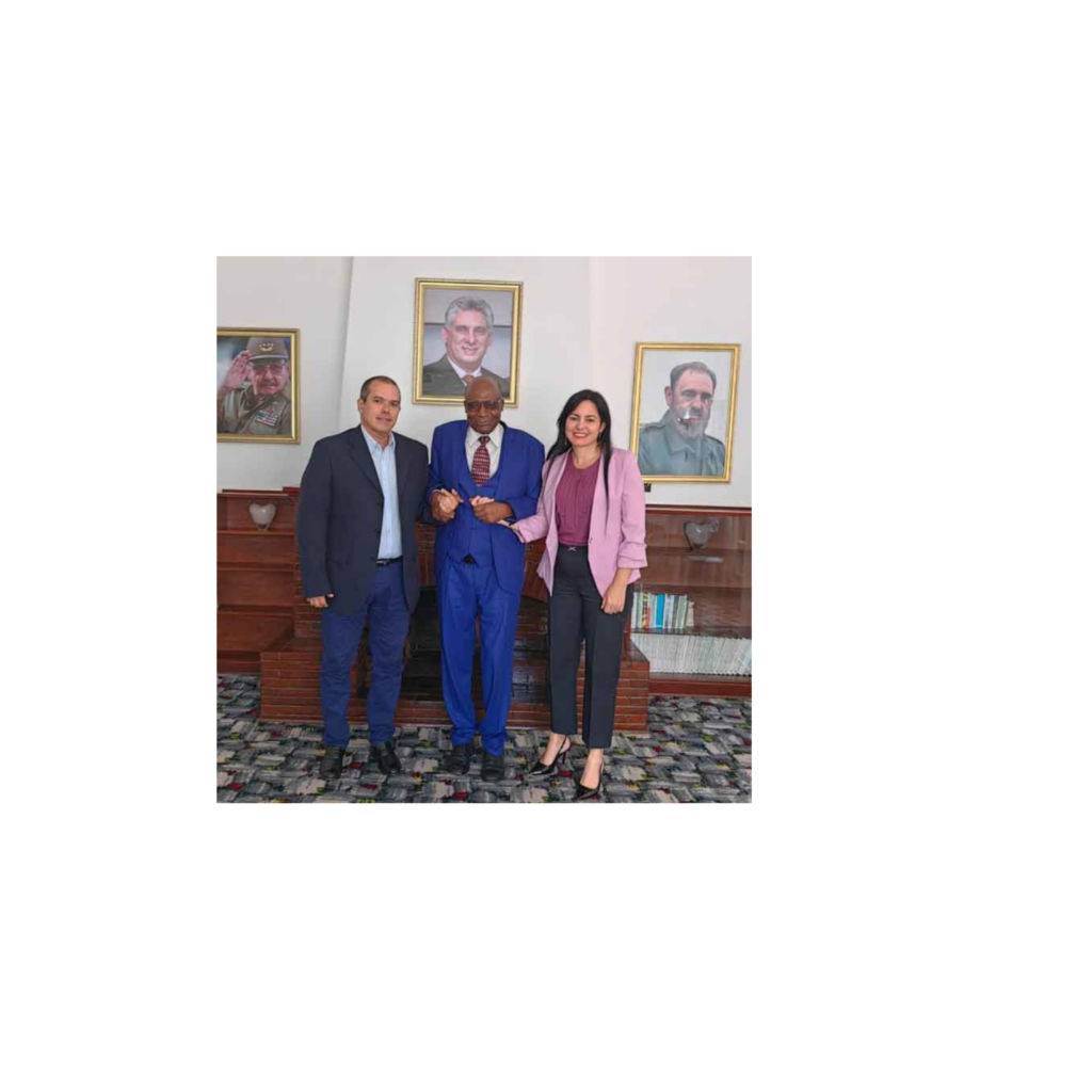 El experimentado diplomático y la Jefa de la Misión conversaron sobre la historia, objetivos e importancia de la labor del Instituto Superior de Relaciones Internacionales de Cuba (ISRI) y de la entidad similar de esta nación africana.