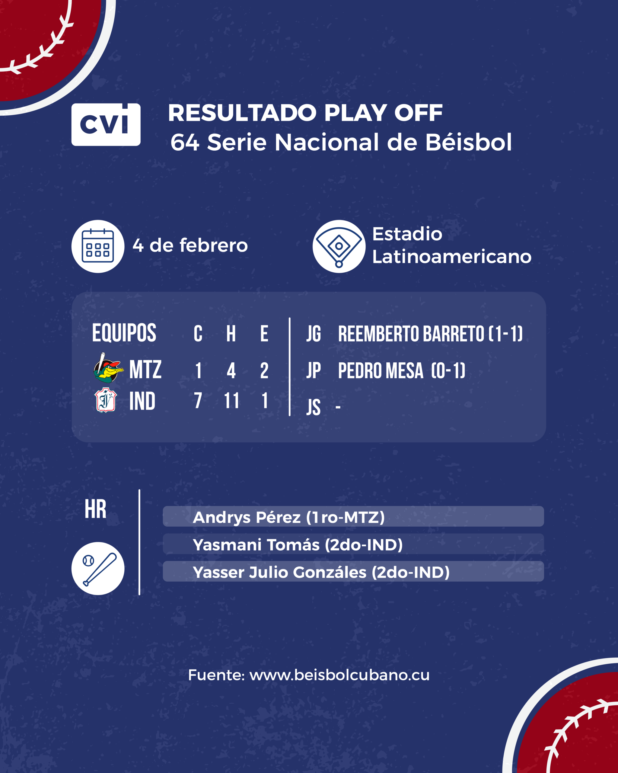 – Yasser Julio González y Yasmani Tomás conectaron su segundo jonrón de los Play Off (1/4 final + semifinal).