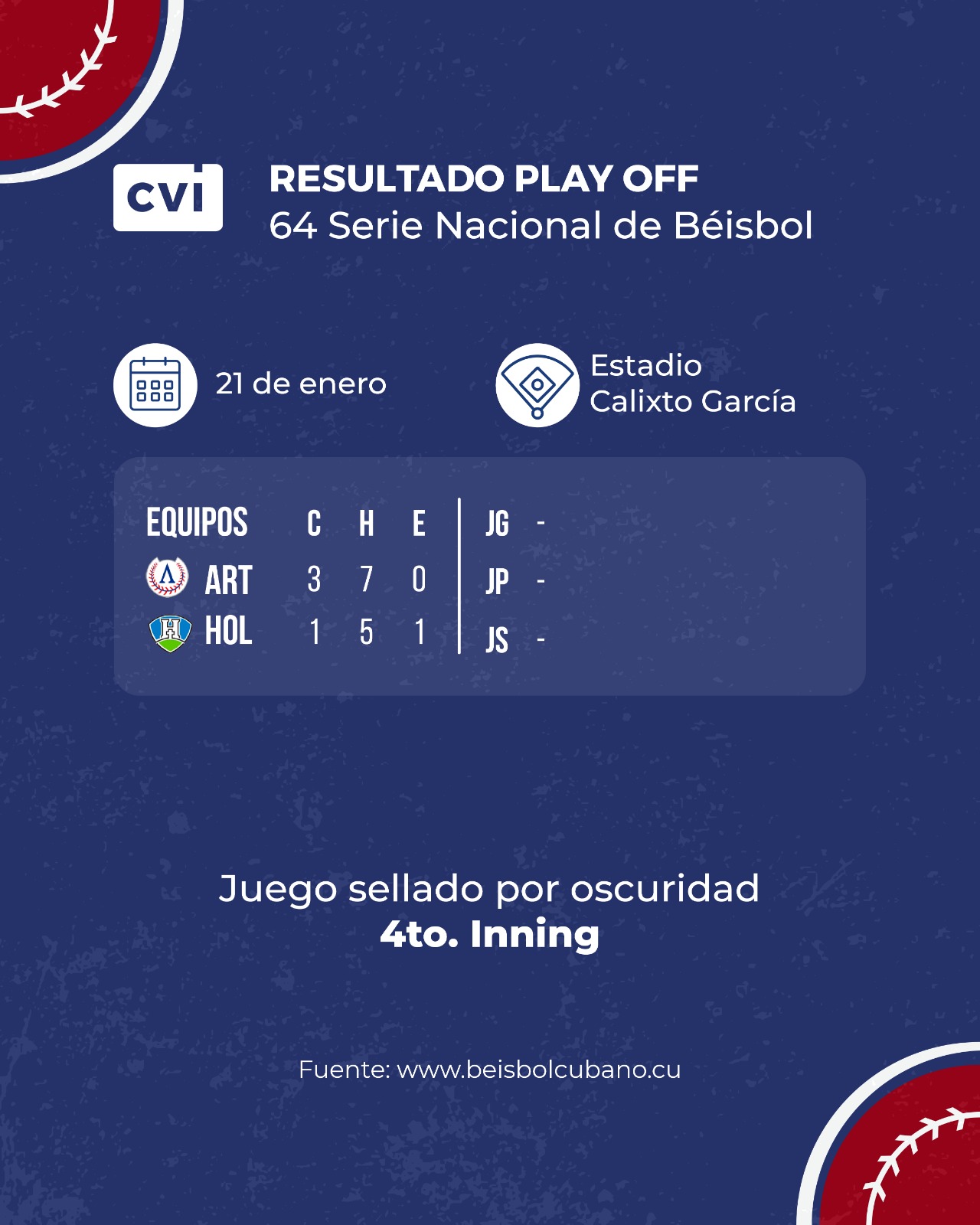 En el estadio Calixto García, los Cachorros de Holguín y los Cazadores de Artemisa, sellaron por oscuridad en la alta de la cuarta entrada.